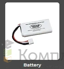 - Аккумулятор: литий-полимерный аккумулятор 450 мАч, 7,4 В, 2S, 25C