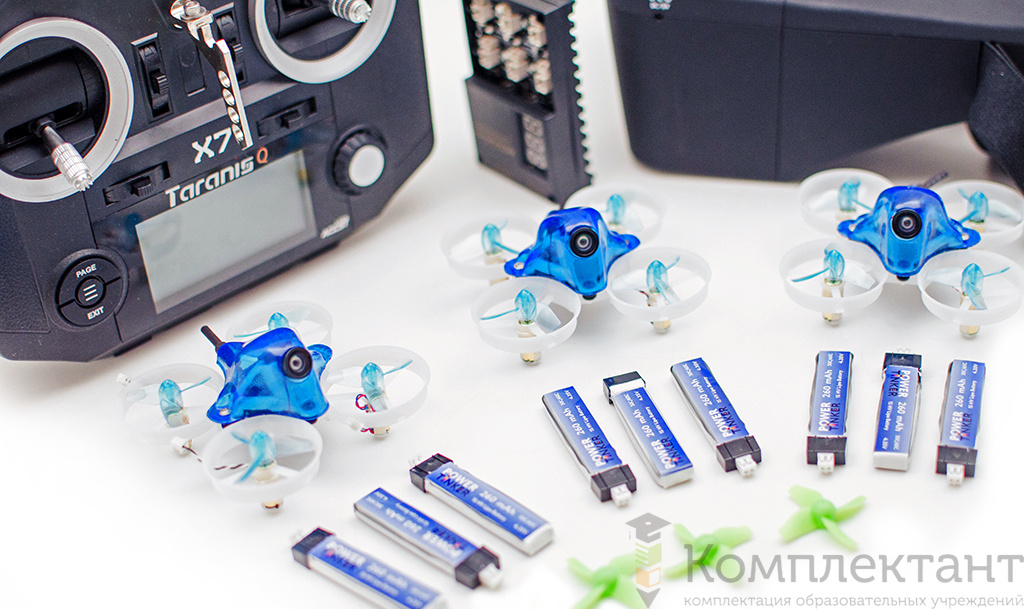 Образовательный набор состоит из восьми готовых к полёту современных мини-дронов, а также комплекта стандартизированных элементов полосы препятствий. Включает электронные версии учебных материалов, набор запчастей, все необходимые инструменты и симулятор для тренировки навыков управления квадрокоптером.
