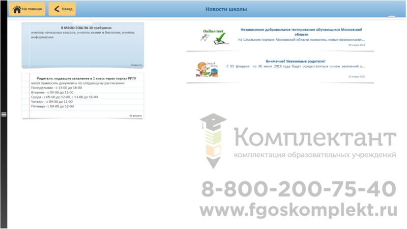 - Уникальное программное обеспечение для образовательных учреждений, позволяющее легко загрузить расписание, схему кабинетов, информацию для родителей и многое другое.
