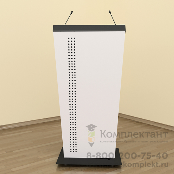 Легкий, утонченный дизайн трибуны Smartone серии PRO, выполненный в стиле Hi-Tec, и черно-белая цветовая гамма позволяют элегантно вписаться в интерьер актового зала, поточной аудитории любого института или университета.