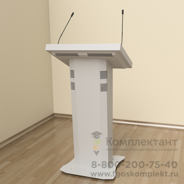 Комплектация трибуны Smartone PRO22 позволяет выступающему быстро и удобно задействовать всё оконечное оборудование аудитории: без пульта включить проектор, поднять или опустить экран, регулировать громкость акустических систем, вносить графические комментарии в транслируемый материал, не отходя от своего рабочего места. Состав трибуны: