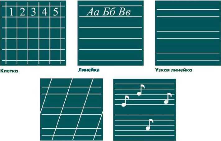 - Разлиновка: клетка, линейка, косая линейка, нотный стан