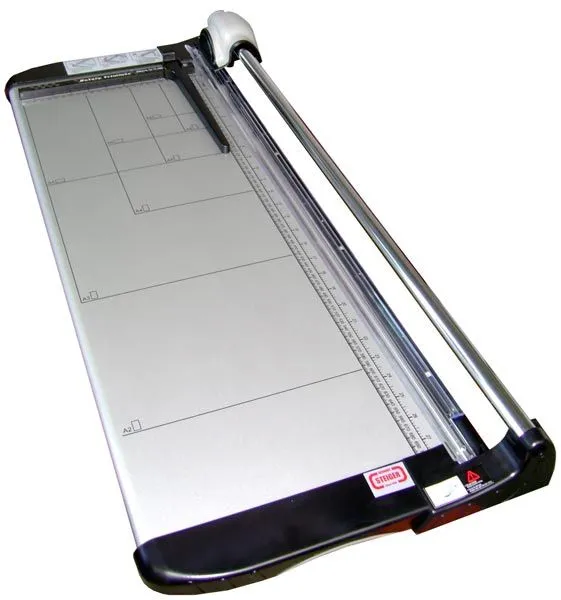 Роликовый резак бумаги Steiger R-48 имеет очень надежную конструкцию. Основание резака Steiger R-48 выполнено из толстой стали. Steiger R-48 имеет самозатачивающийся нож, который в свою очередь имеет большую толщину и диаметр, что увеличивает срок его службы и улучшает качество реза. Поверхность режущей поверхности резака Steiger R-48 покрыта приятным на ощупь гуммированным пластиком. Также в роликовом резаке предусмотрен контрнож, который тоже имеет большую толщину и режущие кромки с двух сторон для более длительной эксплуатации. По отношению к остальным резакам Steiger R-48 имеет рабочую поверхность гораздо шире своих аналогов, на которой нанесены разметки в мм, дюймах и градусах, что позволяет поворачивать его в процессе эксплуатации. Роликовый резак бумаги Steiger R-48 имеет антибликовое покрытие рабочего стола и автоматический прижимной механизм.