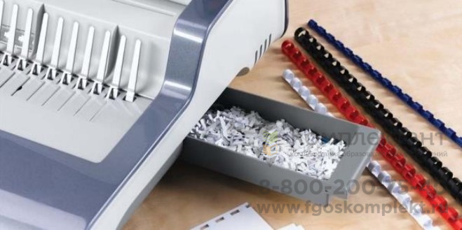1. Брошюровщик (металлическая пружина). Прибор предназначен для скрепления листов бумаги в один пакет. С помощью устройств, соединяющих документы на металлических пружинах, подготавливают информационные материалы и презентации для акционеров, годовые отчёты компании, переплеты дипломов или курсовых работ. Главное достоинство таких машин — возможность переплетать как небольшие, так и объемные документы.