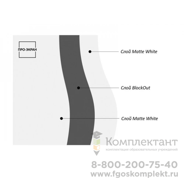 Для изготовления моторизированных экранов ПРО-ЭКРАН используется высококачественное белое ПВХ полотно (Matte White) со светонепроницаемым слоем (BlockOut), коэффициентом усиления 1 и натуральной цветопередачей. Матовая поверхность экрана гарантирует отсутствие бликов, обеспечивает высокую яркость и большие углы обзора до 170°