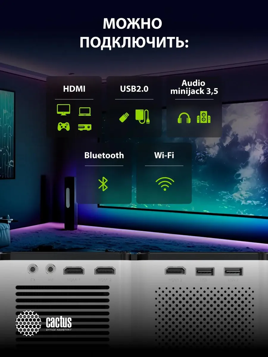 Проектор Cactus CS-PRO.03WT.Full HD-A, белый, Wi-Fi