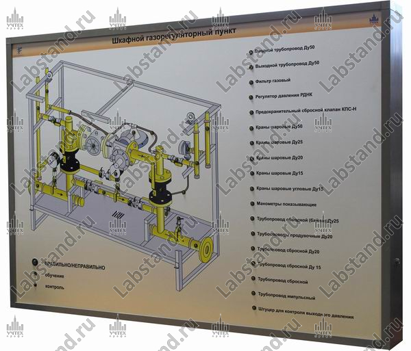 Назначение: Стенд-планшет предназначен для изучения принципа действия приборов и составных элементов газорегуляторного пункта.