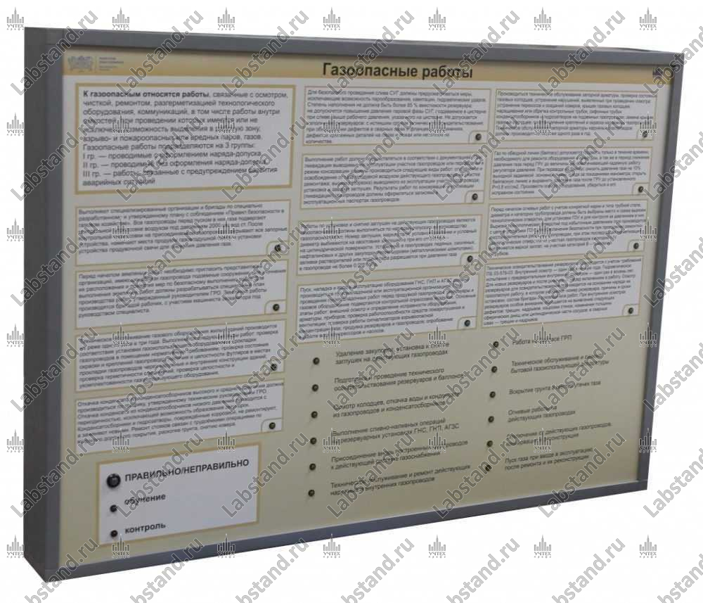 Назначение: Стенд-планшет предназначен для изучения правил и требований проведения газоопасных работ.