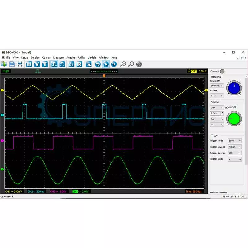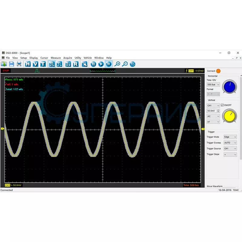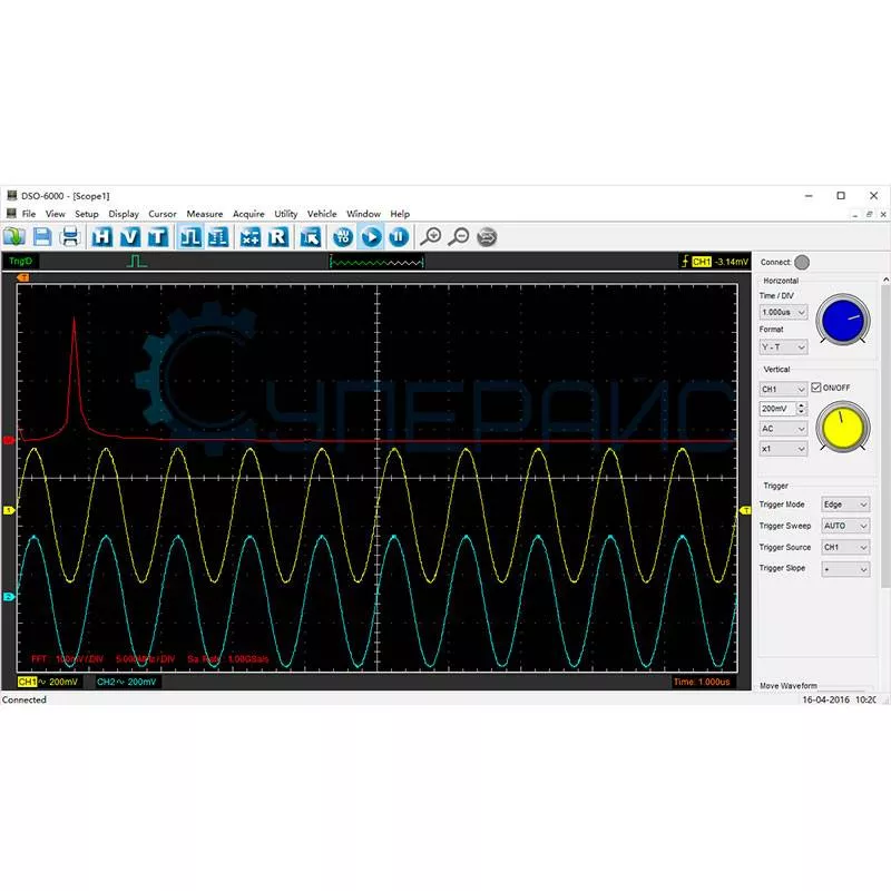 Программные возможности | Данные формы волны могут быть выведены в EXCEL, BMP, JPG по времени и напряжению Изменения будут отображаться на двух устройствах одновременно | |||