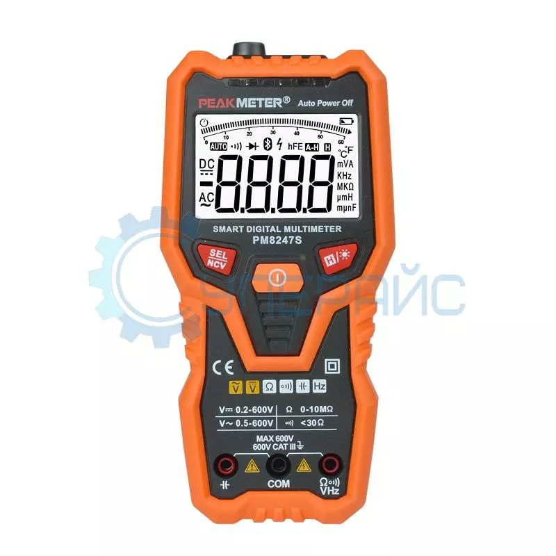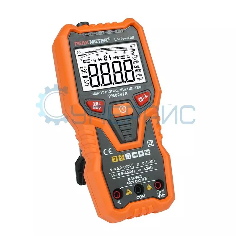 Peakmeter PM8247S – это цифровой мультиметр с автоматической настройкой пределов и дополнительными возможностями, такими как: измерение емкости аккумуляторов, частоты тока, сопротивления проводников и прозвонка соединений. Кроме этого, PM8247S имеет возможность измерения постоянного и переменного напряжения и сохранения полученных данных на дисплее. Мультиметр способен осуществлять быструю проверку наличия или отсутствия напряжения переменного тока в сети и приборах бесконтактным способом и имеет надежную и безопасную конструкцию, все входы и функции защищены от перезагрузки.