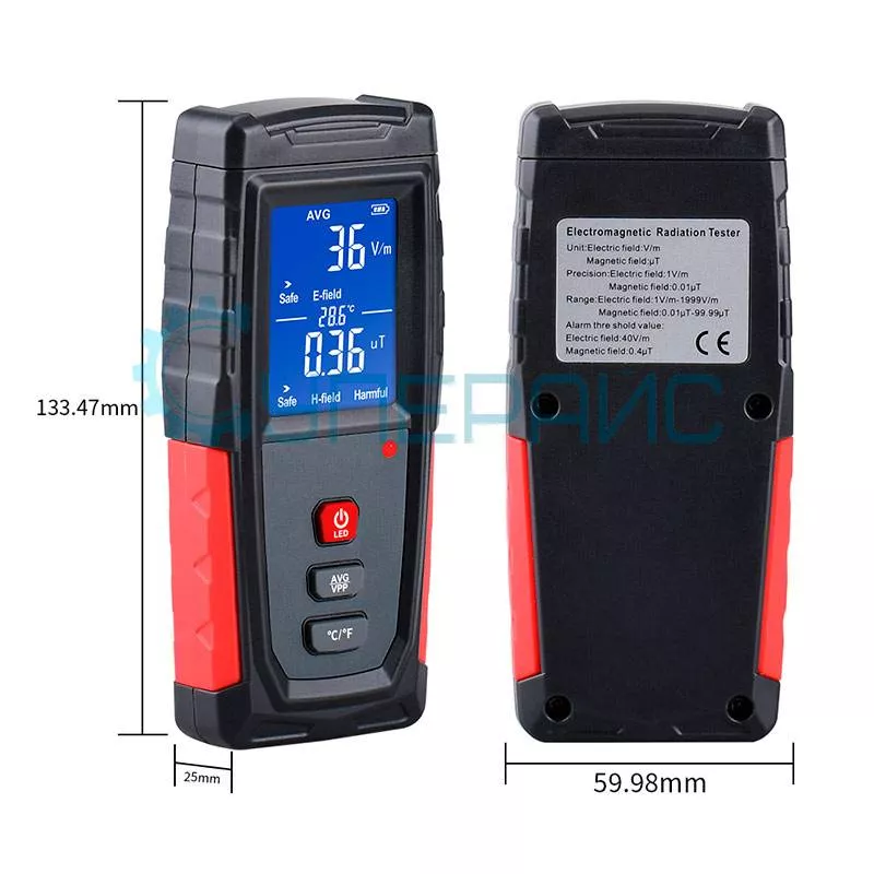 Диапазон измерения напряженности | 1 -1999 В/м | 0.01 - 99.99 мкТ |