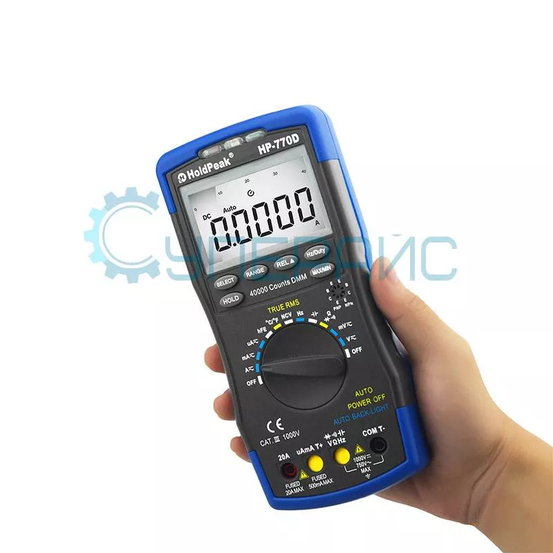 Портативный мультиметр фирмы HoldPeak серии HP-770. Данная модель HP-770D является одним из самых мощных и точных в линейке. Позволяет производить до 40000 отсчётов с минимальной погрешностью.