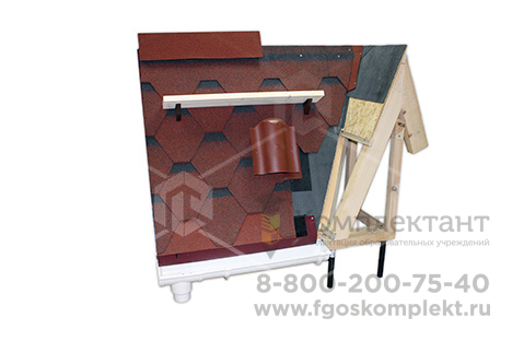 Макеты по устройству кровли в разрезе (позволяют изучить следующие элементы кровельных конструкций: стропильная система; обрешетка; контробрешетка; кровельный материал; комплектующие элементы (коньковые и карнизные элементы, крепеж, элементы примыкания); система вентиляции подкровельного пространства (коньковая вентиляция, аэраторы); система снегозадержания; система безопасного перемещения по кровле; подшивка карнизного свеса; водосточная система);