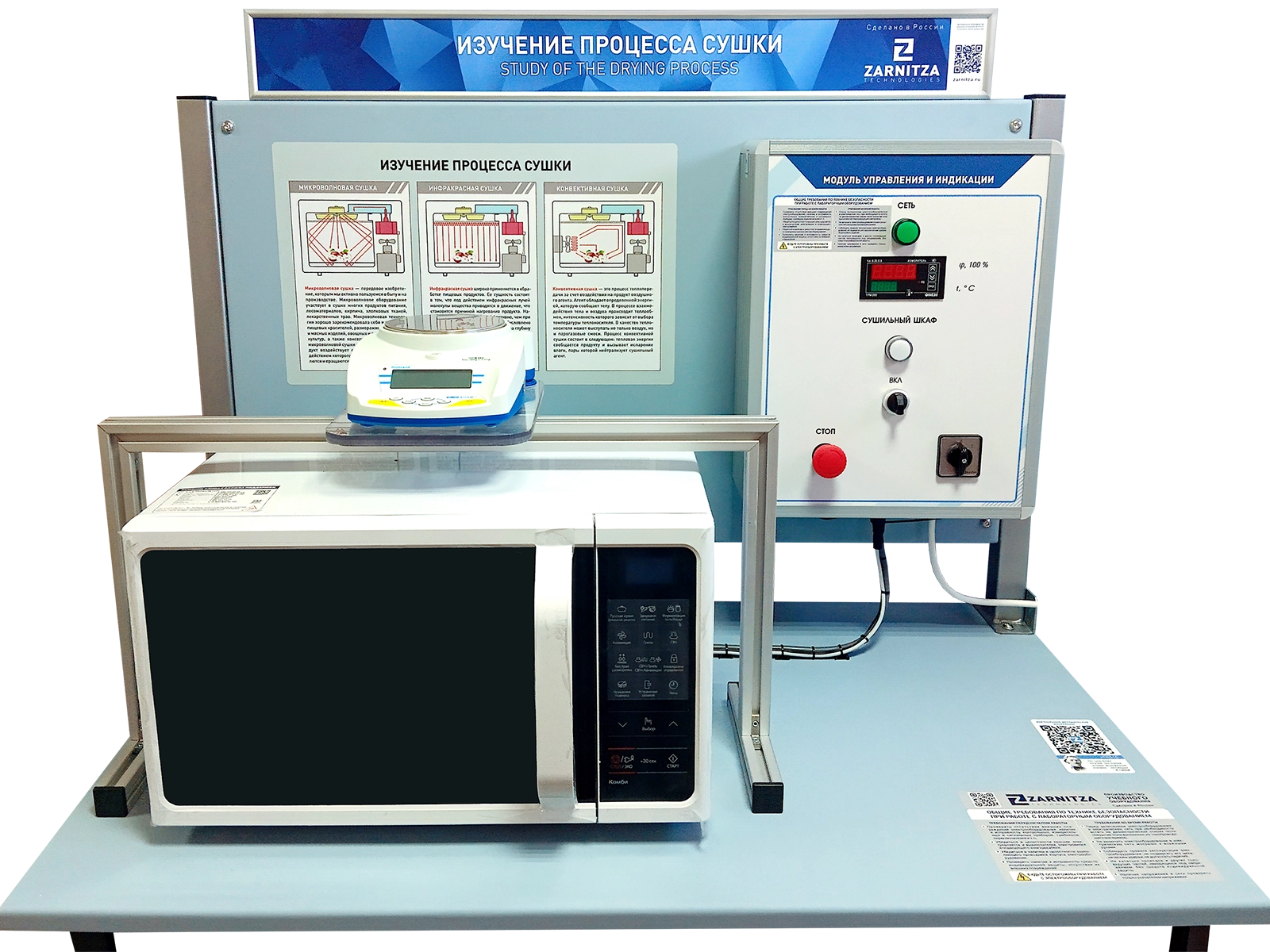 Учебное оборудование позволяет изучить основные процесса сушки. Стенд выполнен в настольном исполнении.Комплект учебно-лабораторного оборудования "Изучение процесса сушки" предназначен для проведения лабораторных работ по изучению различных способов сушки влажных материалов.