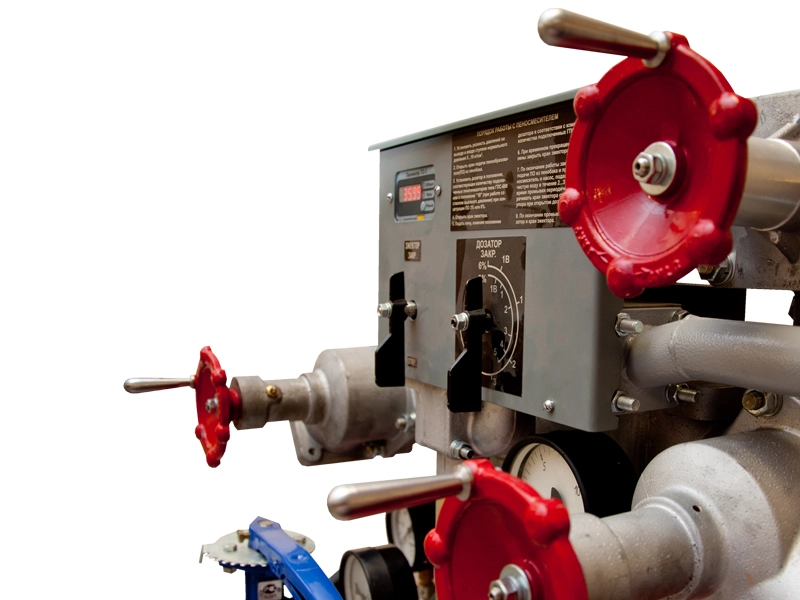 Тренажер пожарного насоса имитирует забор и подачу огнегасящих жидкостей. Звуковая система реализует имитацию звука работы двигателя пожарного автомобиля и насоса на различных режимах. Система визуализации обеспечивает согласованное отображение насоса, водопенных коммуникаций и навесного оборудования, соответствующего выбранному упражнению. Движение и смешение жидкостей отображается на проекционном экране разными цветами в виде флэш-анимации и отражает следствие любой манипуляции с органами управления насоса и вспомогательного оборудования. Оценка выполнения упражнения производится по 5-балльной системе.