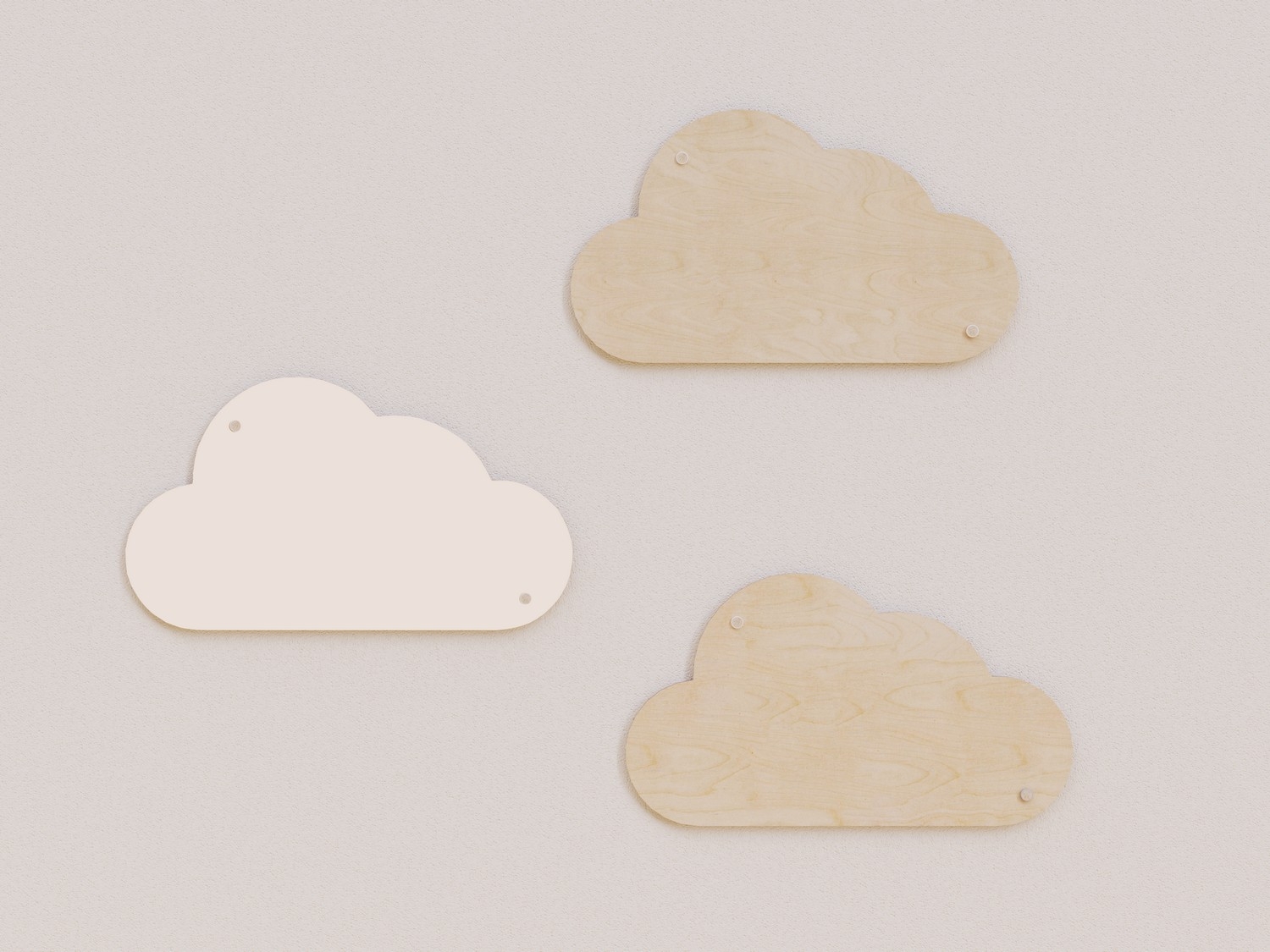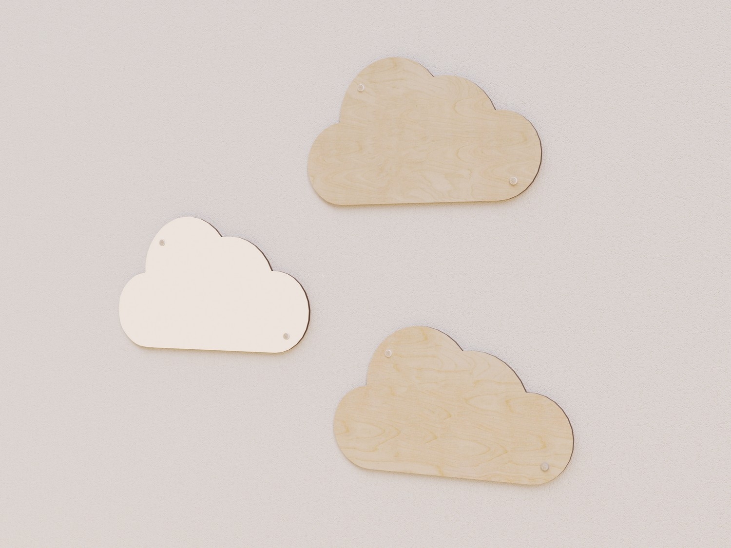Панели «Облака» созданы для декорирования помещений в детском саду, школе, музее, библиотеке и других учреждениях и пространствах. Они изготовлены из березовой фанеры и покрыты водостойким лаком, одно облако из набора покрыто краской. Высокое качество продукции обеспечивает ее долговечность и простоту в уходе: достаточно влажной уборки для поддержания чистоты.
