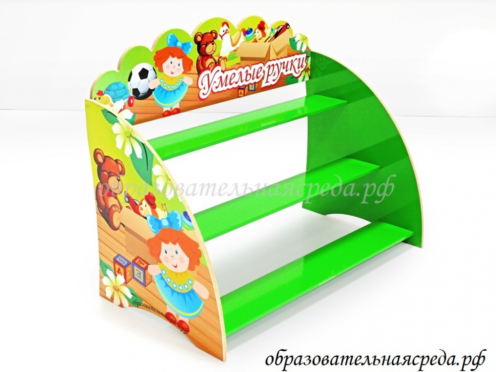 Полочка для лепки "Игрушки" выполнена из МДФ и рассчитана на 25-30 работ. Высота полочки - 0,41м., ширина - 0,51м., глубина 0,28м.
