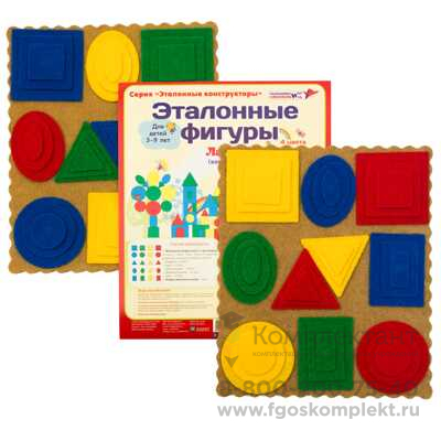 Эталонные фигуры Ларчик (ковролин, 4 цвета) Игра является отличным средством формирования и развития у ребенка сенсорных представлений о цвете, форме и величине, она помогает освоить пространственные представления и является отличным тренажером в развитии внимания, памяти и воображения. Сказочные игры и истории представленные в инструкции и на сайте помогут и педагогам и родителям сделать эту простую игру увлекательной и любимой! Возраст: 3-9 Состав: 1. Фигуры из ковролина 3-х размеров (сторона 100мм, 75мм, 50мм), 4 цветов (красный, желтый, зеленый и синий): - квадрат – 12 шт.; - круг – 12 шт.; - треугольник – 12 шт.; - прямоугольник – 12 шт.; - овал – 12 шт. 2. Ковролиновая основа – 2 шт.