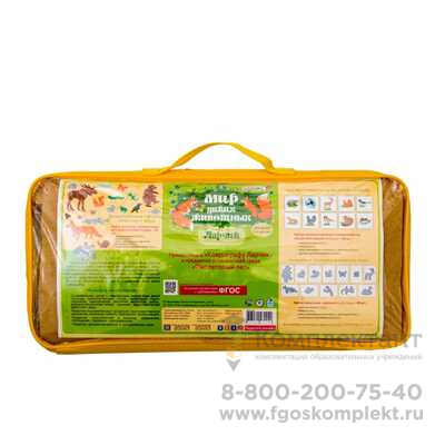 Мир диких животных (комплект) Уникальный экологичный, безопасный, гипоаллергенный комплект в удобном для переноса и хранения чехле. Состоит из силуэтов диких животных, насекомых, птиц (48 шт. ковролин, крепление -липучка), цветных карточек с реалистичным изображением (48 шт., картон, 90х90 мм., цветная печать), силуэтных карточек (48 шт., картон 148х210 мм., ч\u002Fб печать). Подложка - ковролин. Играя, ребёнок познакомится с представителями животного мира, научится классифицировать, сравнивать, соотносить ковролиновый силуэт и изображение на карточке, составлять описательные рассказы, увлекательные истории. Надписи на обратной стороне карточек будут мотивировать ребёнка к овладению чтением. Комплект подходит для использования в семье и образовательном учреждении как для индивидуальной игры, так и для организации развивающих занятий, коллективных игровых ситуаций. Возраст: 3-9 лет Состав: Набор силуэтов с креплениями для ковролиновой основы – 48 шт.: - Млекопитающие (12 шт.) - Птицы (12 шт.) - Рыбы, земноводные, рептилии и моллюски (12 шт.) - Насекомые и паукообразные (12 шт.) - Набор цветных карточек с названиями на оборотной стороне (90х90 мм.) – 48 шт. - Млекопитающие (12 шт.) - Птицы (12 шт.) - Рыбы, земноводные, рептилии и моллюски (12 шт) - Насекомые и паукообразные (12 шт.) Набор силуэтных карточек (148х210 мм.) – 48 шт: - Млекопитающие (12 шт.) - Птицы (12 шт.) - Рыбы, земноводные, рептилии и моллюски