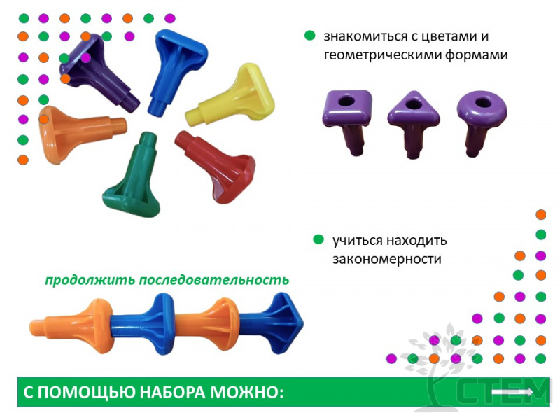 («шляпки» колышек имеют 3 формы: треугольник, квадрат, круг, высота колышек вместе с шляпками - 4,5 см),