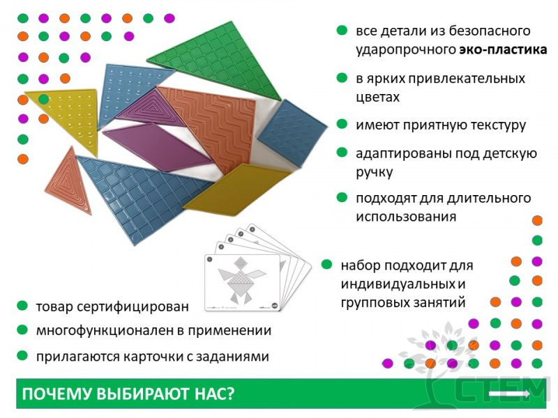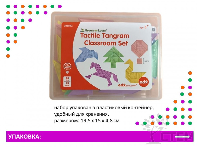 Танграм тактильный (35 дет. Эко-пластик). Набор с карточками
