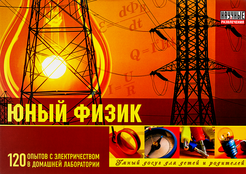 Проводя эксперименты, содержащиеся в развивающем наборе «Юный физик» компании «Научные развлечения», ребёнок получит навыки построения электрических цепей, проведет опыты с резисторами, конденсаторами и диодами, узнает о свойствах жидкостей, на практике познакомится с теорией строения вещества. В комплект входят предметы и оборудование для проведения опытов, а также книга с подробным описанием экспериментов. Все опыты для детей максимально безопасны и доступны.
