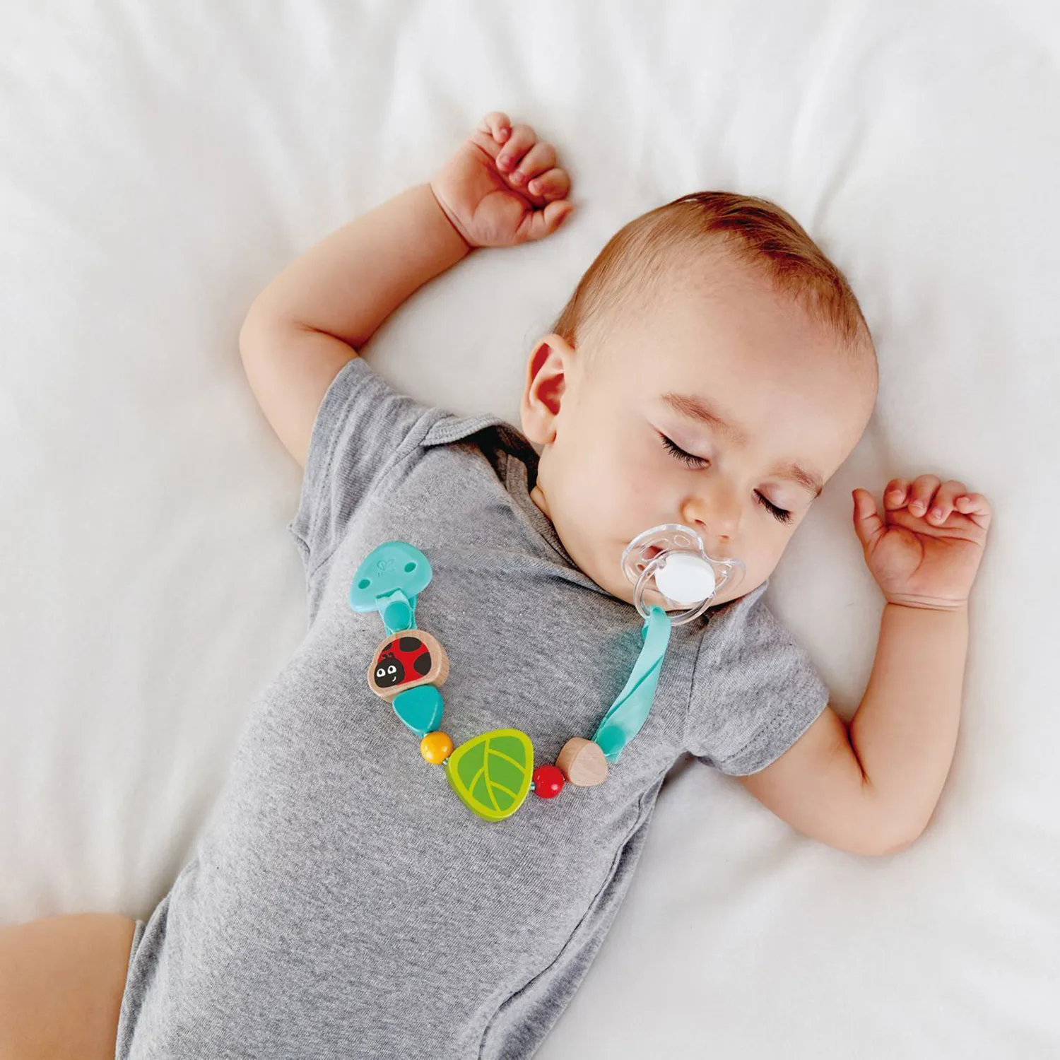 Держатель для соски Божья коровка – позволит прикрепить пустышку в пределах досягаемости и содержать ее в чистоте. Игрушка изготовлена из дерева