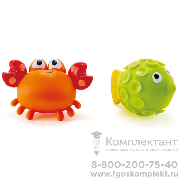 Игрушка брызгалки Рыбка и краб преобразит процесс купания и покорит кроху. Если игрушки наполнить водой и нажать на них, они выстреливают водой. Краб брызгает из его вращающихся когтей, в то время как маленькая рыбка брызгает изо рта.