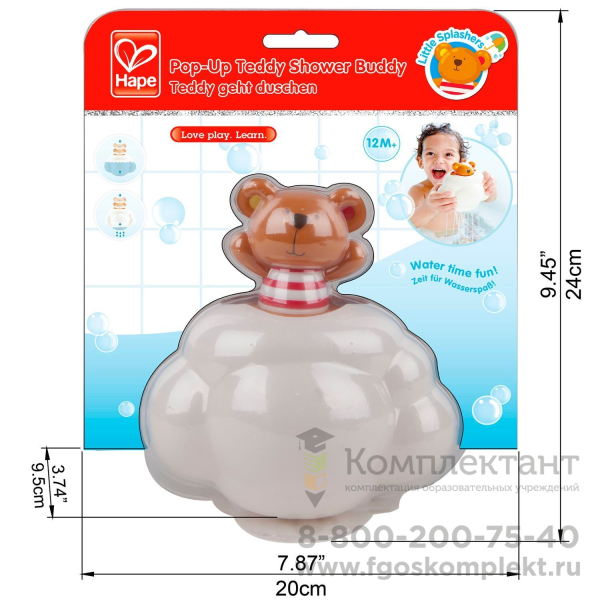 • Надо опустить игрушку в ванную. • Игрушка наполнится водой, мишка поднимет лапы. • Из игрушки польется душ. • Рекомендуется для мальчиков и девочек от 1 года. • Снижение боязни воды и длительного нахождения в ней. • Развитие малыша. • Повышение активности мелкой моторки. • Сделают процесс купания крохи ярким и веселым. • Отлично подходит для игры плескаться в ванной и бассейне. • Призывает детей общаться и заниматься водными развлечениями. • Игрушка изготовлена из качественного пластика. • Игрушка прошла контроль на безопасность и качество. Hape - один из крупнейших в мире производителей деревянных игрушек. Hape руководствуется философией, что будущее принадлежит нашим детям, и создает игрушки, которые вдохновляют на игру и изучение мира, в котором мы живем. Все продукты соответствуют строгим международным стандартам качества и безопасности. Hape - новое поколение игрушек.