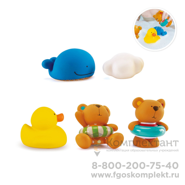 • В комплект входит: 2 мишки, уточка, кит, облако. • Рекомендуется для мальчиков и девочек от 0 лет. • Снижение боязни воды и длительного нахождения в ней. • Развитие малыша. • Повышение активности мелкой моторки. • Сделают процесс купания крохи ярким и веселым. • Отлично подходит для игры плескаться в ванной и бассейне. • Призывает детей общаться и заниматься водными развлечениями. • Игрушка изготовлена из качественного ПВХ. • Игрушка прошла контроль на безопасность и качество. Hape - один из крупнейших в мире производителей деревянных игрушек. Hape руководствуется философией, что будущее принадлежит нашим детям, и создает игрушки, которые вдохновляют на игру и изучение мира, в котором мы живем. Все продукты соответствуют строгим международным стандартам качества и безопасности. Hape - новое поколение игрушек.