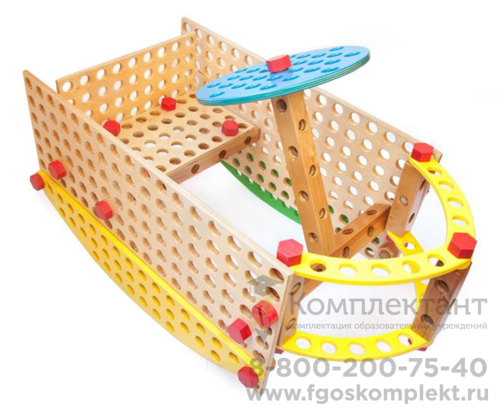 Напольный деревянный конструктор состоит из крупных деталей ярких цветов. В комплекте деревянные винты и болты. Данная комплектация дает возможность собрать три модели водного транспорта - кораблик, катер и лодочку. Готовая модель станет результатом совместной деятельности родителя и ребенка, педагога и ребенка или нескольких детей. Также ребенок сможет собрать модель самостоятельно. В процессе сборки развивается мелкая моторика, логическое и пространственное мышление, умение работать в команде.