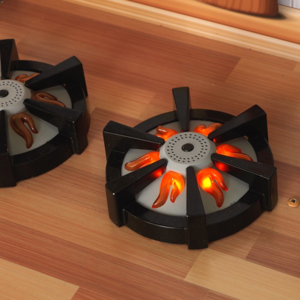 • В распоряжении девочек: слоты для 3 подвесных кашпо, льдогенератор с 3 воображаемыми кубиками льда, световые и звуковые горелки плиты.