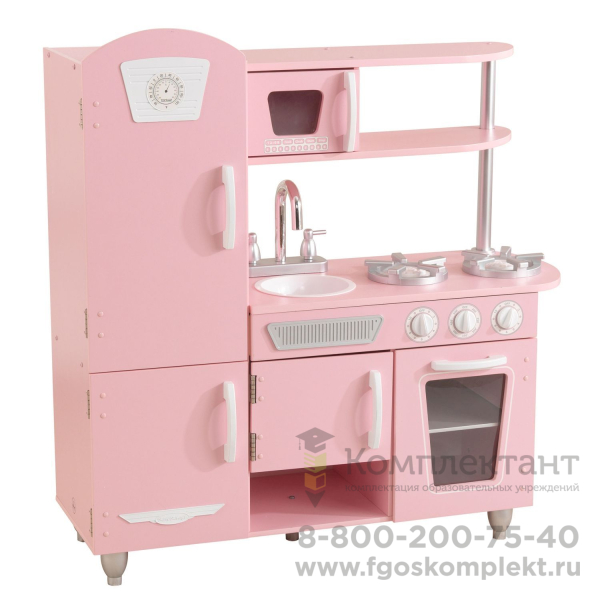 Маленькая хозяюшка будет очень рада, если у неё появится кухонный уголок розового цвета, исполненный в винтажном стиле. Игровой модуль оснащён различной бытовой техникой, необходимой для приготовления различных кулинарных блюд. Малышка с удовольствием будет проводить время за готовкой, чтобы в будущем стать настоящей помощницей для своей мамы.