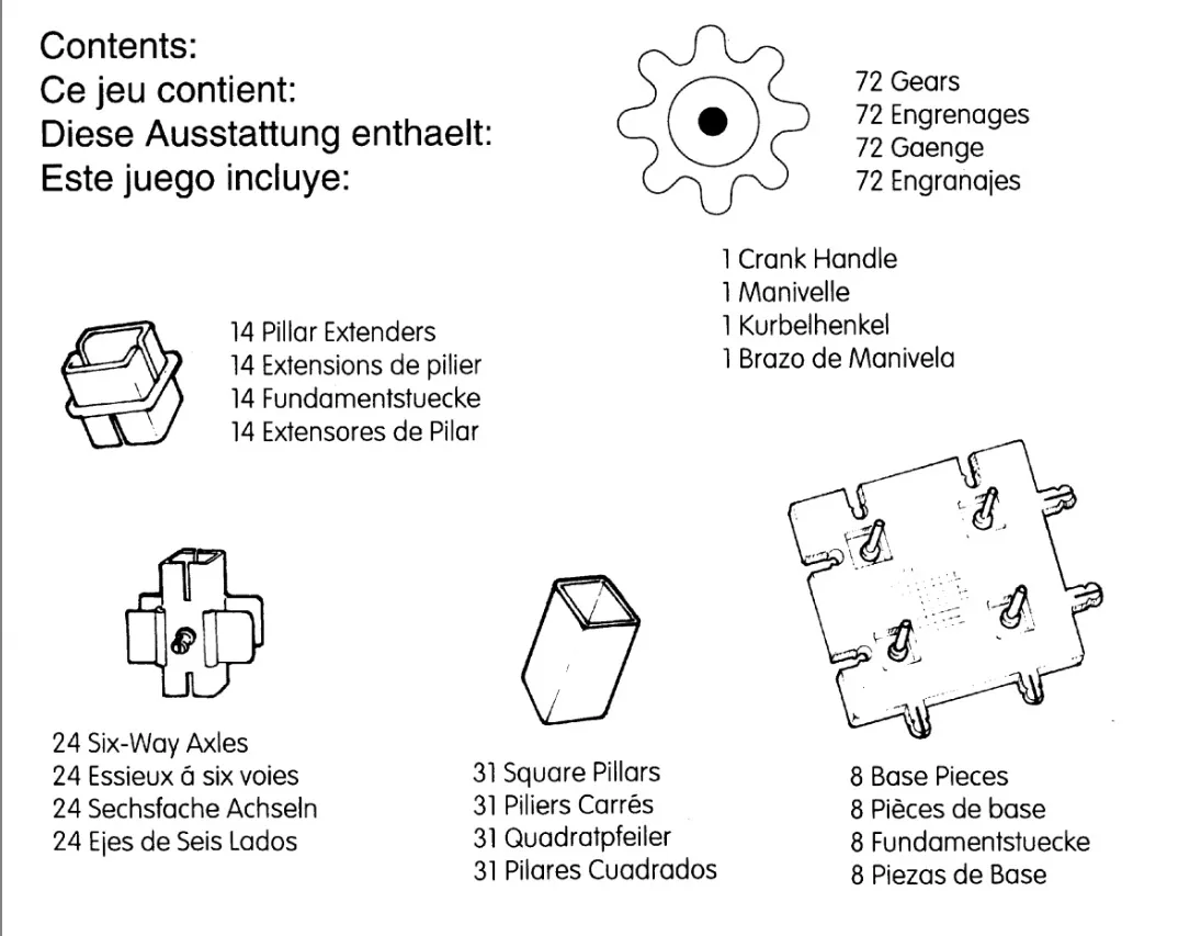 Главная особенность контруктора в том, что в результате правльной сборки зубчатая передача приведет в движение всю конструкцию!