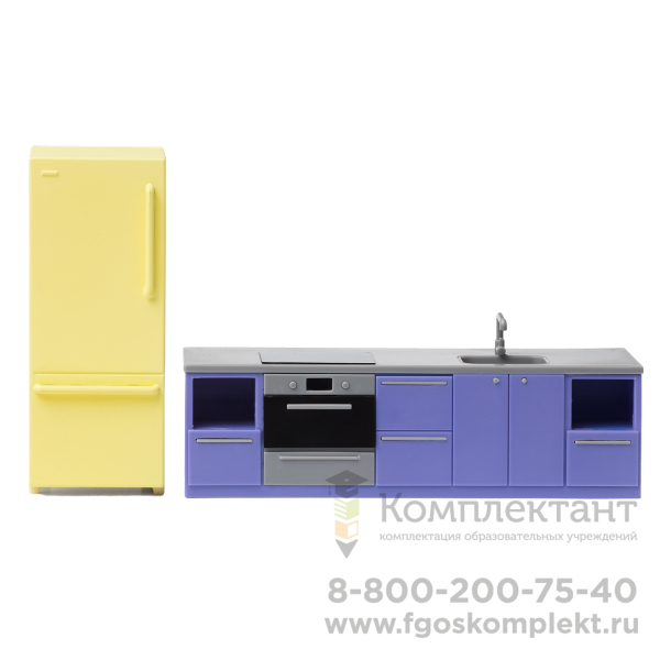 Набор мебели для кухни Несколько отсеков для хранения кухонных принадлежностей Плитка с духовкой Раковина Цвет фиолетовый Желтый холодильник