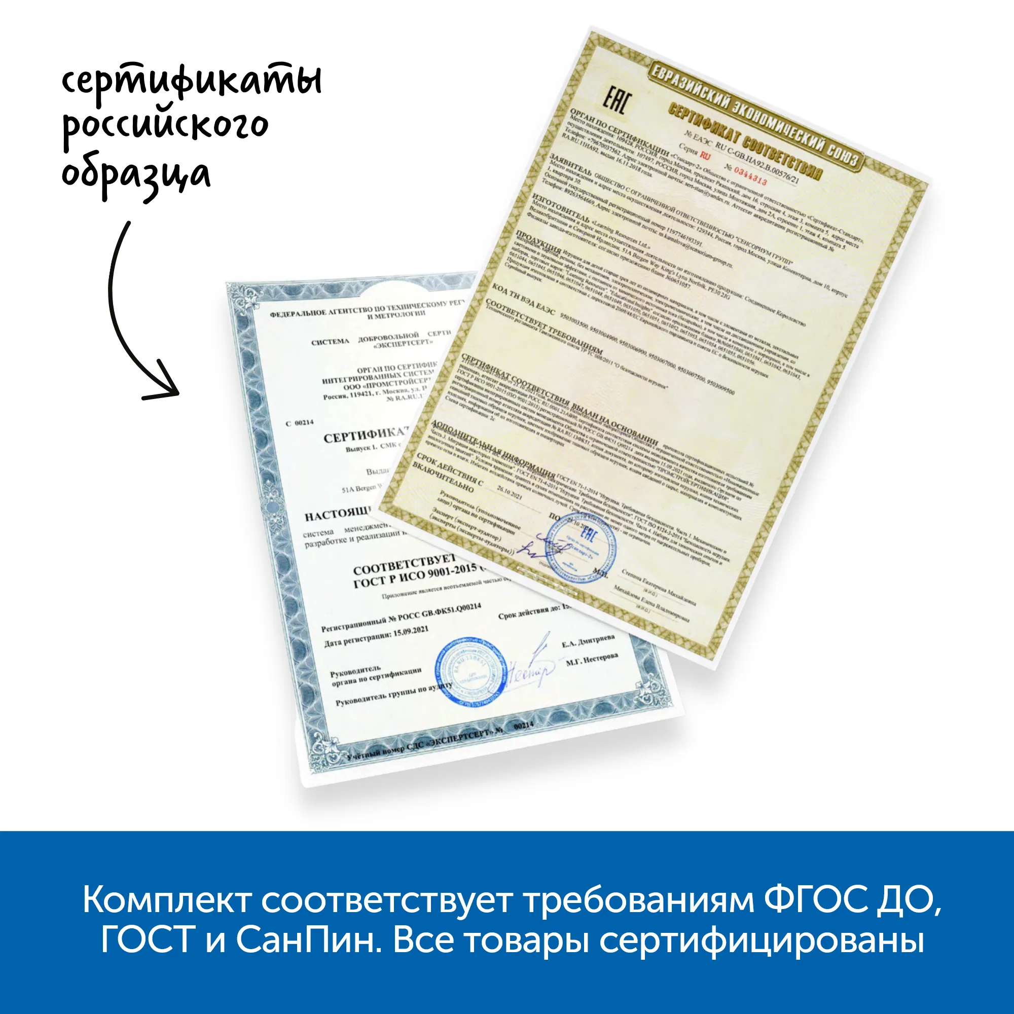 Один комплект рассчитан на ДОО для организации групповой и индивидуальной работы. Возраст 5 -10 лет.