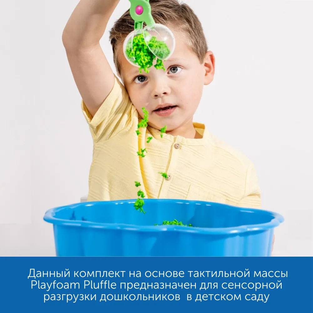 Образовательный комплект Playfoam Pluffle предназначен для сенсорной релаксации дошкольников в детском саду. Масса для лепки Playfoam Pluffle не имеет аналогов в мире. Благодаря специальной безопасной формуле масса не засыхает, не пачкает стол и одежду, не оставляет ощущения липкости или слизи на руках. Дети могут смешивать цвета "живого песка" Playfoam Pluffle, сжимать и давить его, отпускать и наблюдать, как масса рассыпается и "утекает" сквозь пальцы, будто живая! Систематические занятия с комплектом способствуют концентрации внимания, благодаря успокаивающему массажному воздействию на пальчики и ладошки. С помощью инструментов, входящих в комплект, у детей формируются необходимые навыки мелкой моторики.