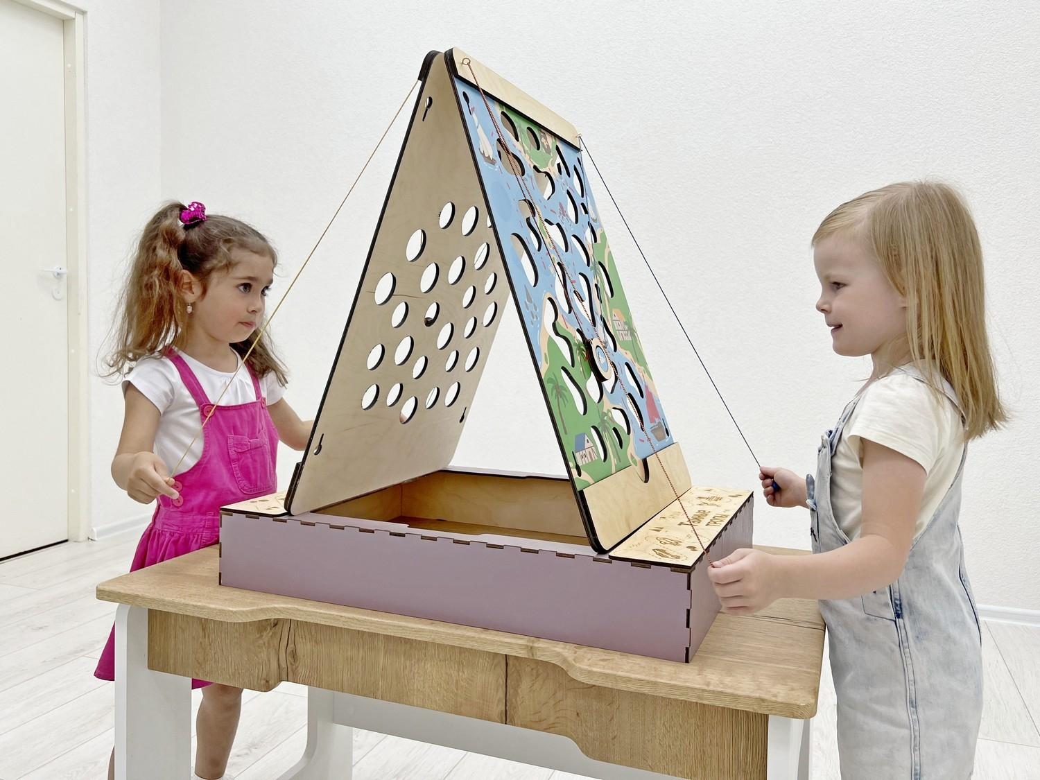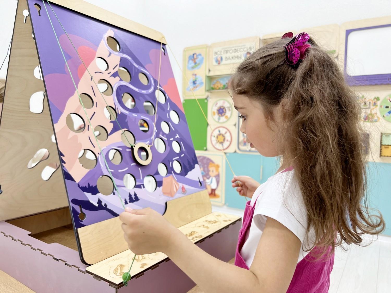 Обойти все препятствия-дыры очень непросто, для этого надо координировать работу сразу двух рук, что стимулирует нейронное взаимодействие больших полушарий головного мозга и связанные с ними высшие психические функции. Дети не только становятся более ловкими и внимательными, но и легче осваивают чтение, письмо, решение логических задач.