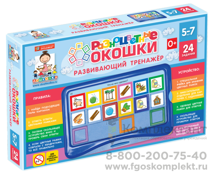 Развивающий тренажёр "Разноцветные окошки" 5-7 лет. Базовый комплект.