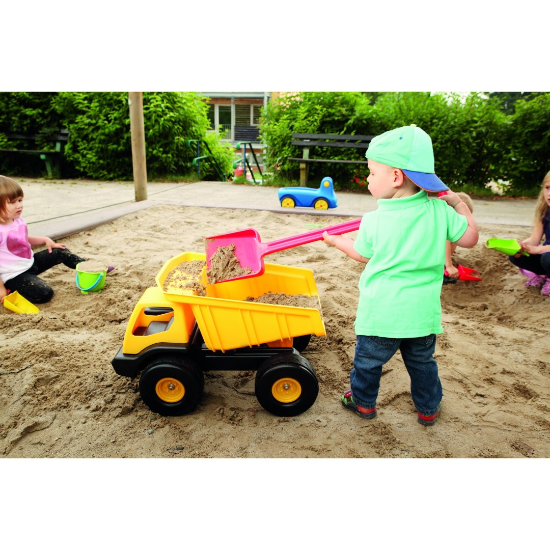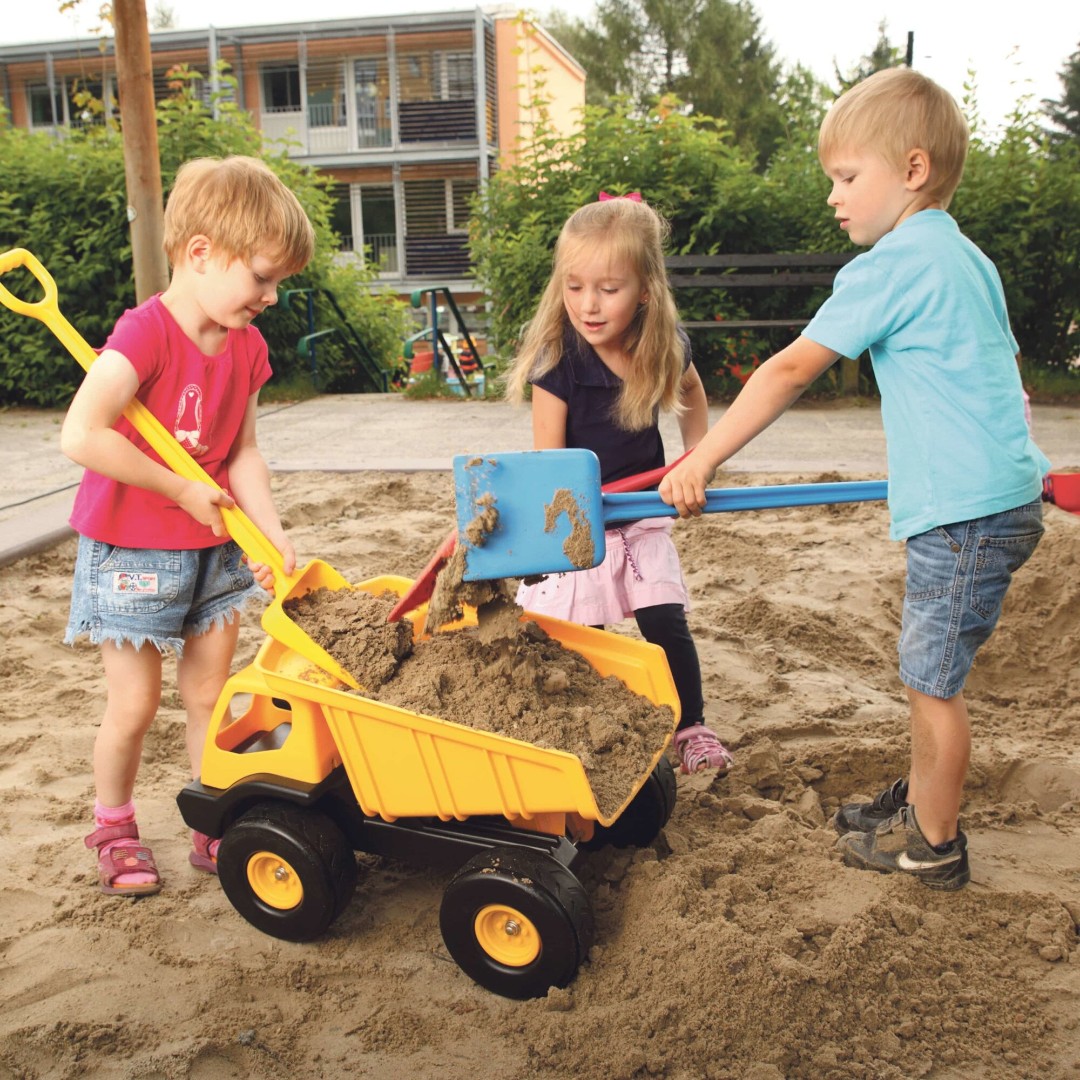 Большой детский самосвал навевает атмосферу пребывания на строительной площадке и отлично подходит для детских игр в песочнице. Он может перевозить не только песок, снег, листья, но и других детей, т.к. он спроектирован специально для использования в детских садах в любую погоду.