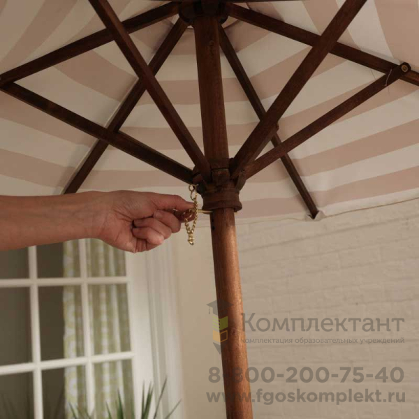 Стол с двумя скамейками и зонтом (бело-коричнеые полосы)