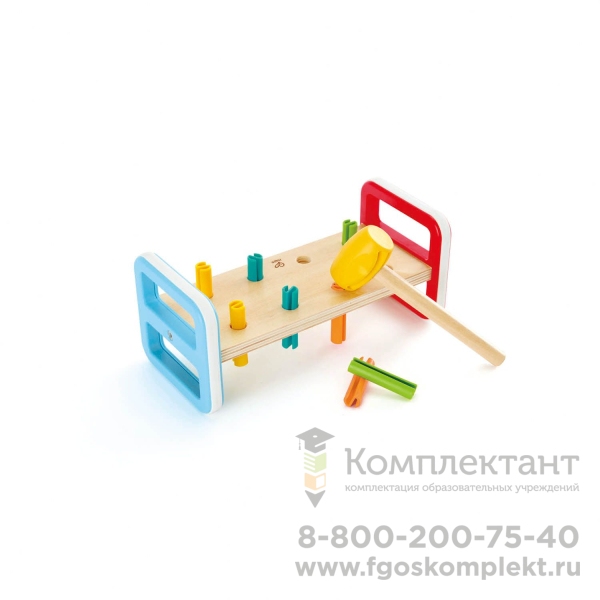 • Скамейка, восемь колышков четырех разных цветов и деревянный молоток с мягкой пластиковой головкой.