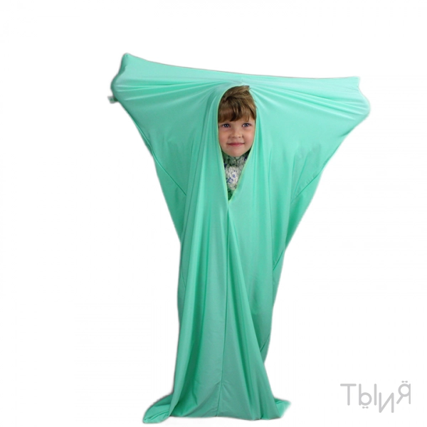 Подходит для занятий нейрофитнесом, используется в комплексах сенсорной интеграции и сенсорных комнатах. Он создан из приятной на ощупь ткани, которая легко тянется, обеспечивая комфорт во время использования. Его прямоугольная форма с обработанным вырезом для головы делает его удобным и функциональным средством для проведения различных упражнений и игр.