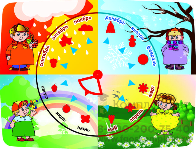 Данная панель разделена на 4 части, каждая из которых визуально отображает времена года и показывает, какие месяца к какому времени года относятся. Развивает мышление и воображение, способствует улучшению памяти и расширению представления о каждом из времён года.