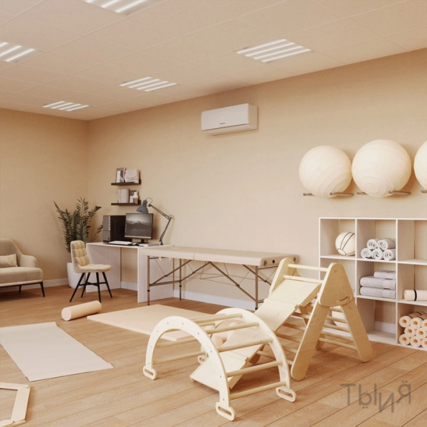 ЛФК кабинет "ФитАктив Плюс" – это гармоничное пространство, где каждый элемент создан для обеспечения максимальной пользы и комфорта. От треугольника Пиклера до экосенсорной тактильной дорожки, все тренажеры и инструменты направлены на развитие физических и когнитивных навыков детей, делая их занятия не только полезными, но и увлекательными.