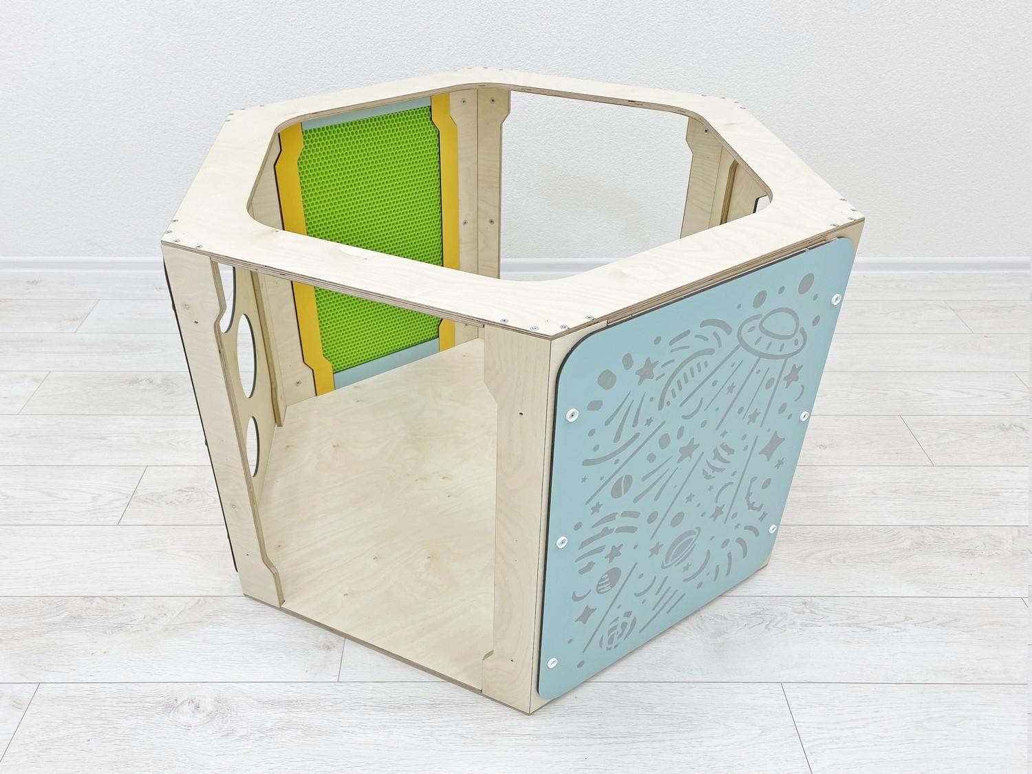 Новый креативный вариант традиционных детских домиков – шестигранные модули-конструкторы, позволяющие создавать трансформируемое игровое пространство.
