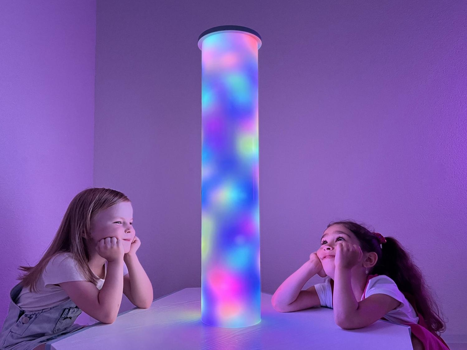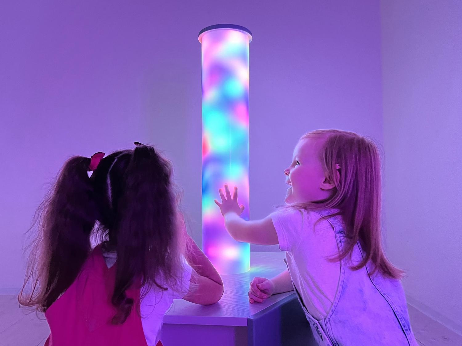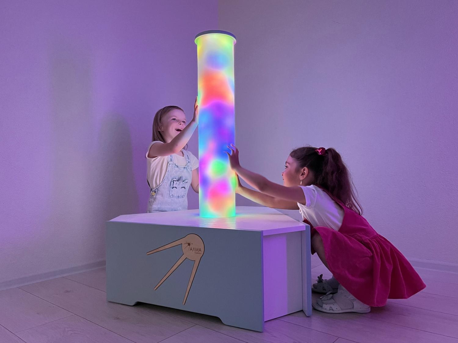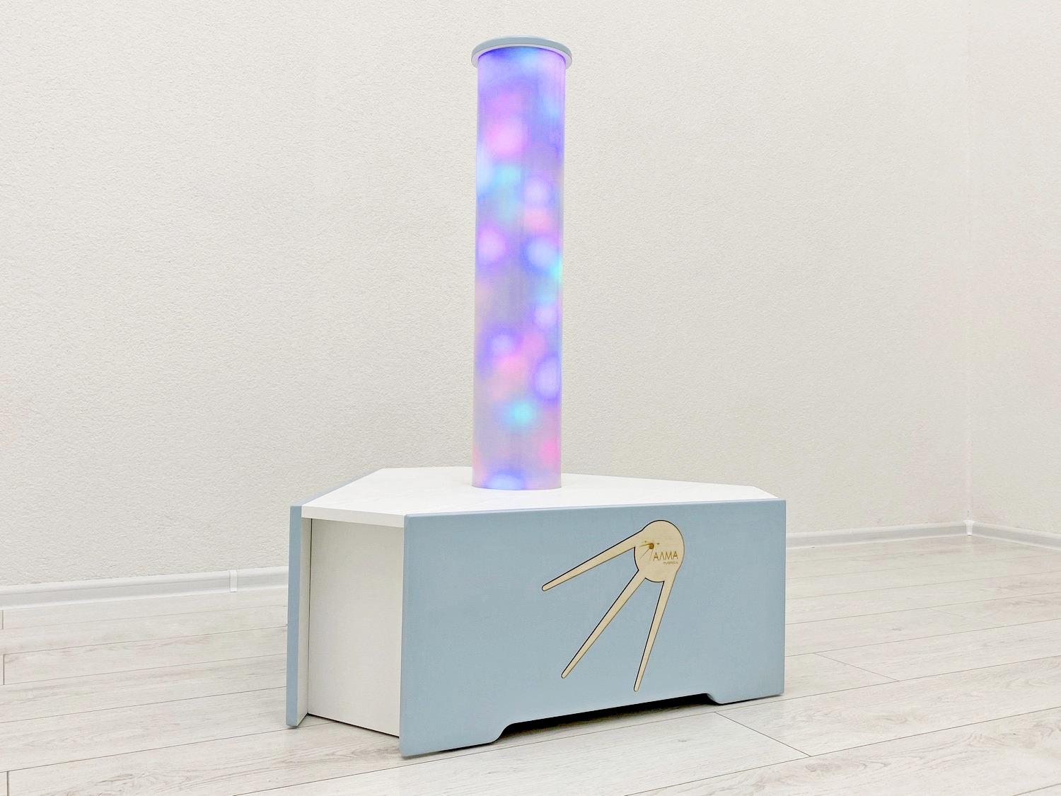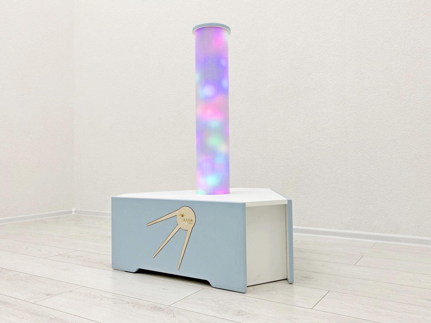 Световое оборудование для оснащения сенсорной комнаты. Колонна может быть не только украшением интерьера, но и вспомогательным инструментом при работе с детьми. Мягкие и плавные переливы света завораживают и расслабляют ребёнка, снимают эмоциональное напряжение, помогают забыть тревоги и волнения.