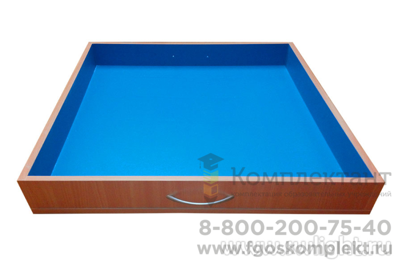 Деревянная песочница может использоваться как в помещении, так и на улице. Благодаря удобным ручкам песочницу можно легко вынести на улицу, на балкон или занести в помещение. Дно и бортики песочниц выкрашены в голубой цвет. Голубой цвет дна символизирует воду (реки. озера, моря), бортики - небо.