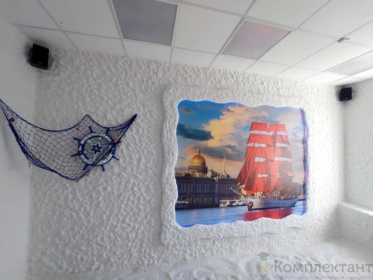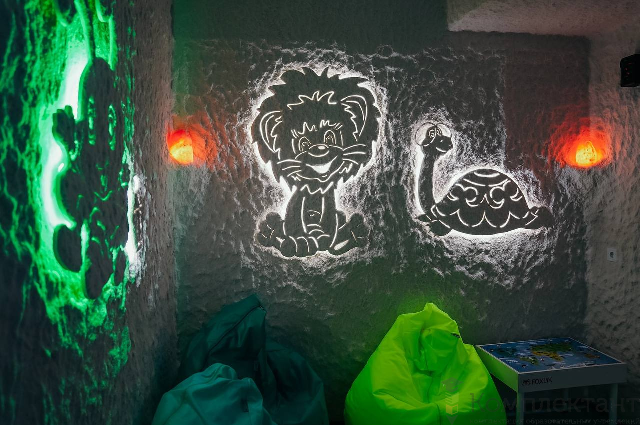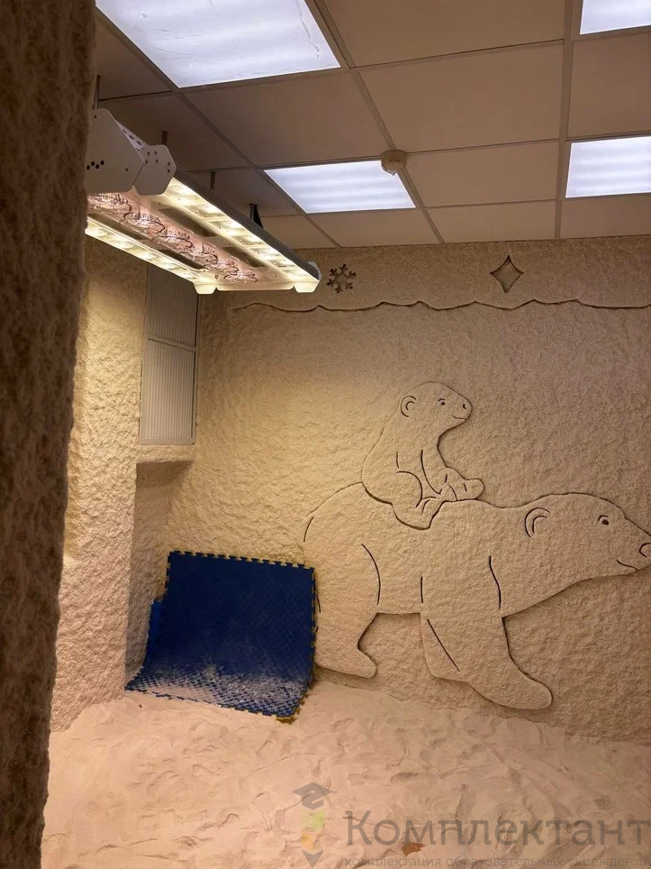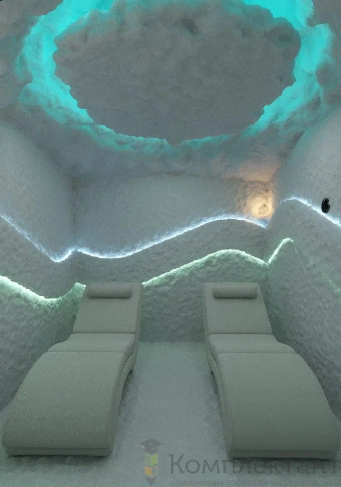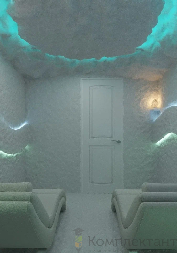 Аэрогалитгенератор Galotech для помещений до 80 куб.м; Работает по принципу «сухого кипения» на препарате «Аэрогалит», 1 пакетик на 1 сеанс; подключение и наладка оборудования, обучение техничесого персонала на месте; оформление помещения на выбранную тематику; оформление стен и пола в помещении пещеры; световое оформление комплекса и электротехнические работы; монтаж вентиляторов; стройматериалы для монтажа галодизайна, соль для нанесения на стены; Аудиосистема с 2 колонками (или телевизор с кронштейном, по желанию), столик.