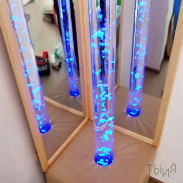 Акриловые зеркала- благодаря отражению в зеркалах визуальный эффект значительно усиливается, увеличивается количество пузырьков и света, и про слабом освещении эффект мерцания и плавающих пузырей по истине удивит и принесёт завораживающее удовольствие.